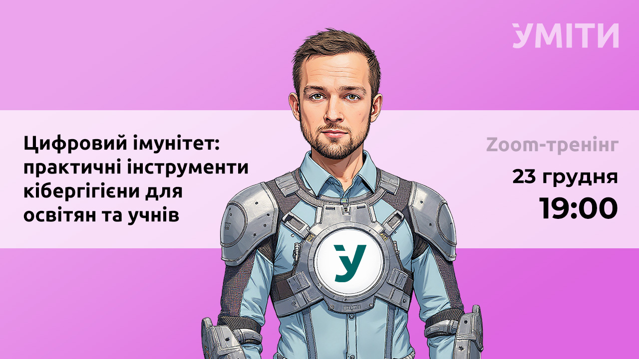23.12 о 19:00 Zoom-тренінг "Цифровий імунітет: практичні інструменти кібергігієни для освітян та учнів"(зареєструватись)